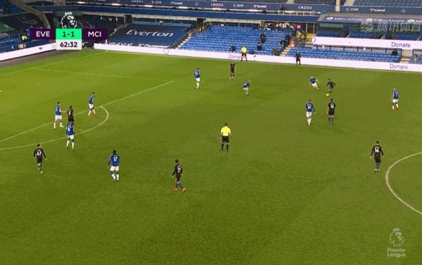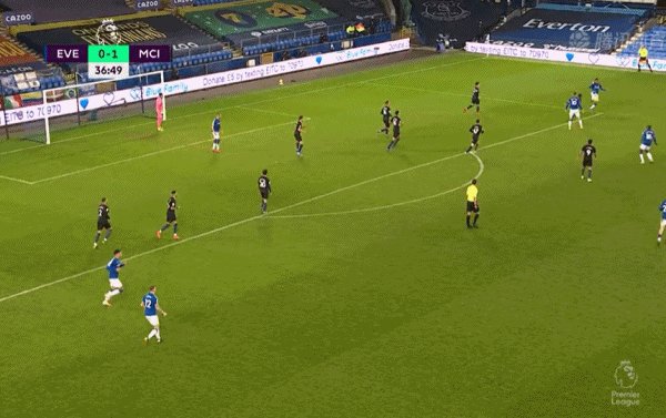 37'科尔曼传中到后点,迪涅小角度射门中柱,球打在理查利松身上弹进,埃弗顿将比分扳平!